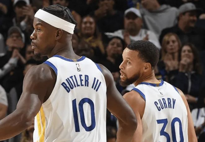 数据方面,勇士队这边,库里19投8中,三分10中4得到27分6板4助攻;库明加11投7中,轰下24分8板4助攻1盖帽;巴特勒得到23分11板3助攻。