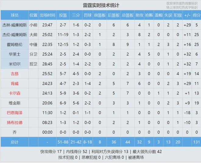 今天霍姆格伦和杰伦-威廉姆斯都是三节打卡,霍姆格伦仅出战22分35秒,15投12中高效率砍下25分9篮板2盖帽。本赛季当霍姆格伦出战时,雷霆20胜0负还没输过。雅虎记者Kevin O'Connor写道:“雷霆就是台高效运转的机器!”